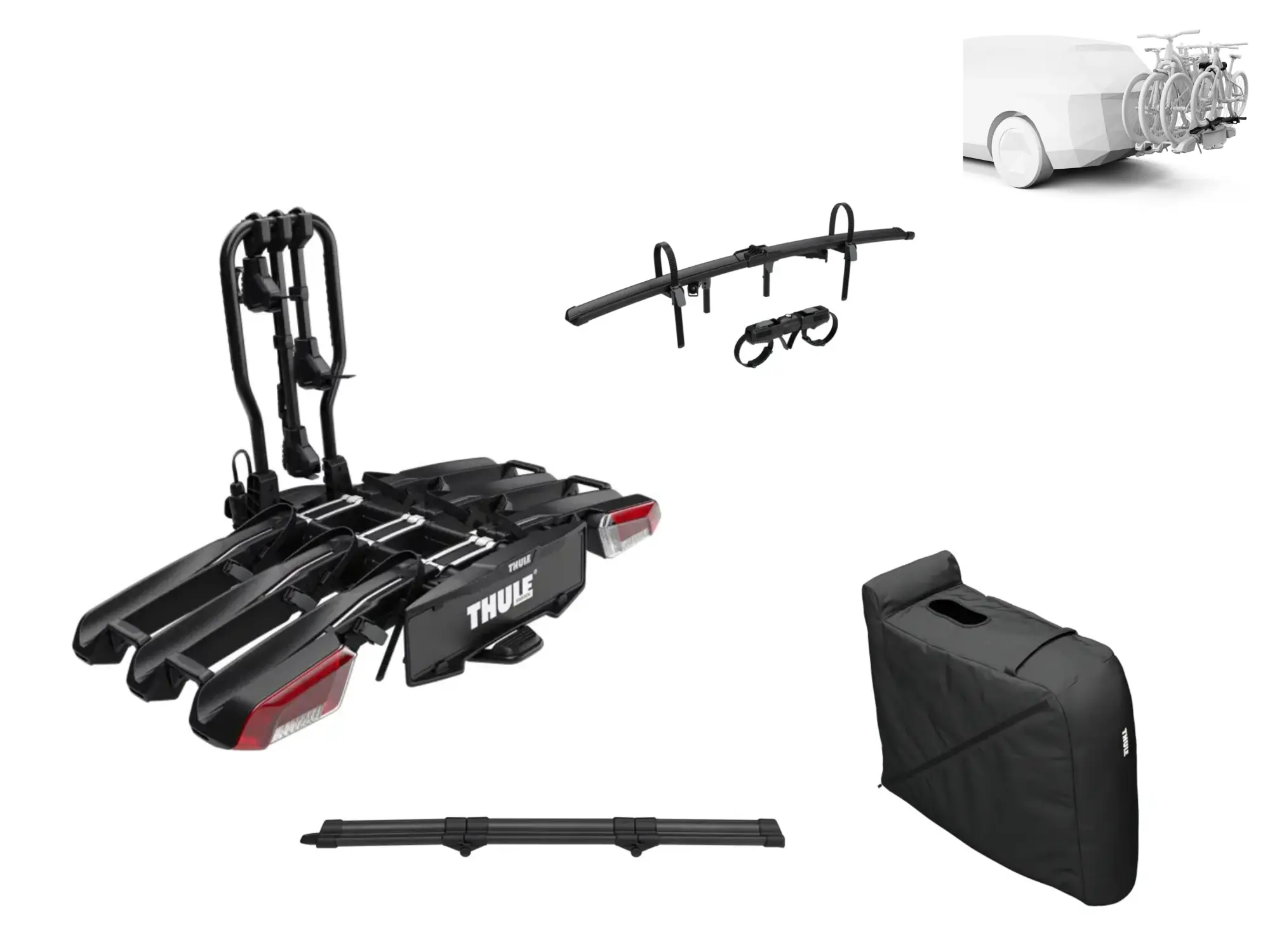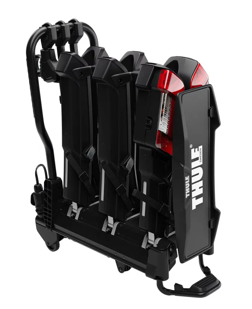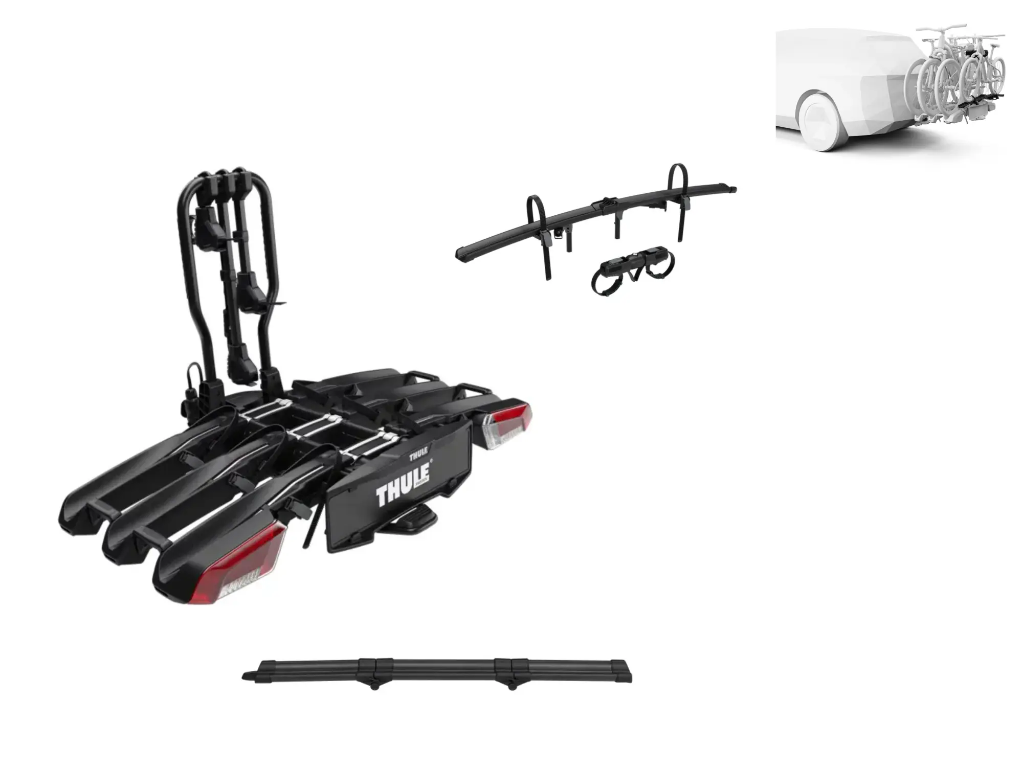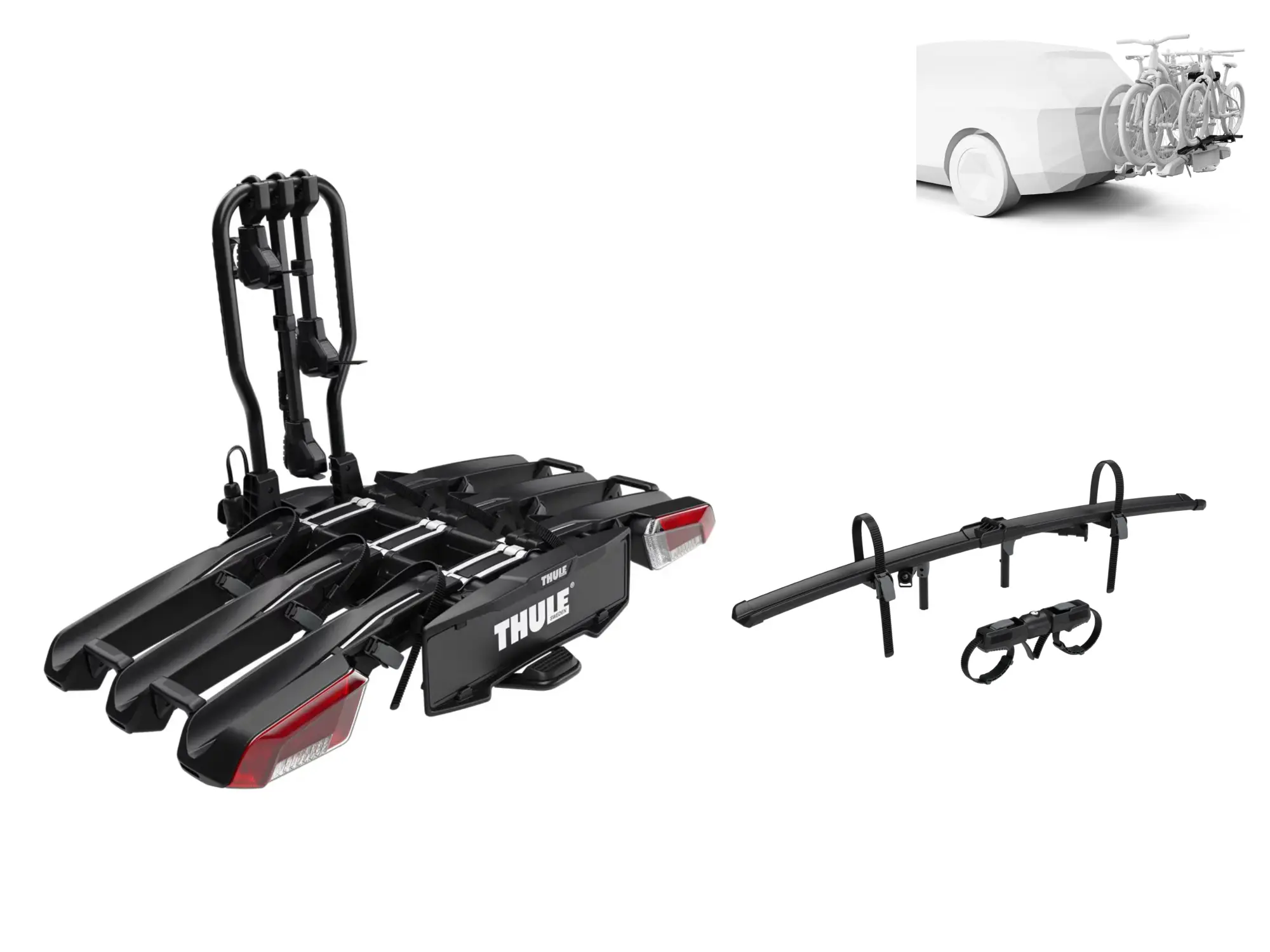 Ce porte-vélos est disponible dans des variantes allant jusqu’à 2 et 3 vélos sur le porte-vélos arrière physique. Mais cela ne signifie pas que vous ne pouvez pas emporter encore plus de vélos. Grâce au nouvel adaptateur pour vélos supplémentaires de Thule, qui se fixe à l’avant du porte-vélos arrière, vous pouvez transporter encore un vélo supplémentaire. Vous pouvez ainsi transporter jusqu’à 3, voire 4 vélos. De quoi transporter les vélos de toute la famille.
