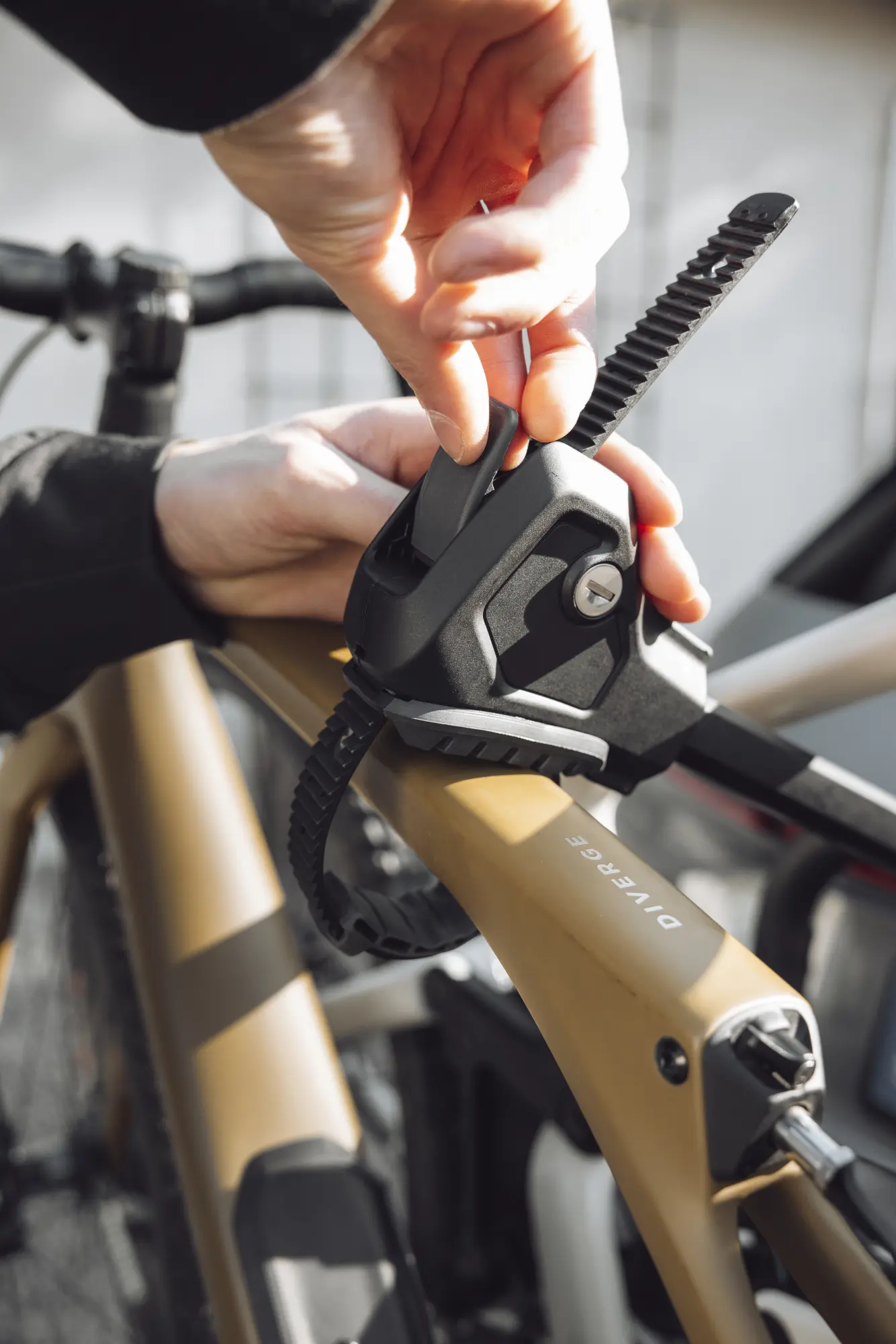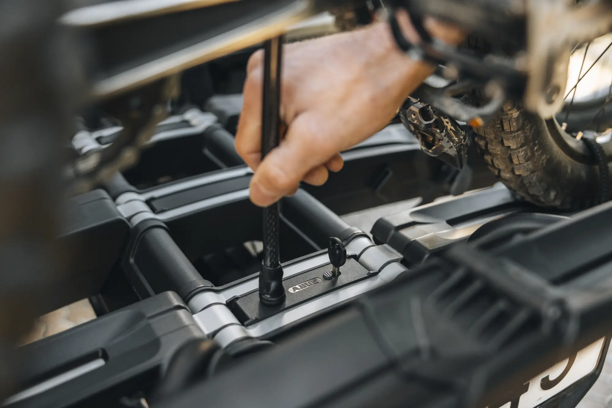 Thule a conçu le nouvel Easyfold 3 de manière à ce que vous puissiez l’installer et l’utiliser facilement. Par exemple, le bras du porte-vélos utilise un système d’encliquetage et de décliquetage. Il est ainsi très facile de placer soi-même ses vélos sur le porte-vélos et de préparer le porte-vélos pour le départ. Vous voulez encore accéder au coffre de votre voiture ? Pas de problème. Grâce à la pédale d’inclinaison Smart Feet située sous le porte-vélos, vous pouvez faire basculer le porte-vélos vers vous afin de pouvoir ouvrir le coffre de votre voiture.