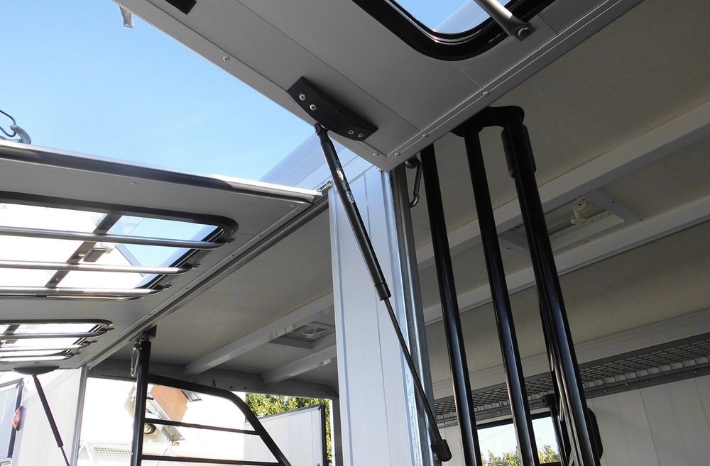 Double porte arrière, fenêtres sur porte arrières, 2 lanternaux, porte couverture, deuxième barre d’attache, séparation supplémentaire, hayon polyester